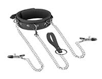 Collier, laisse et pinces à tétons en silicone
